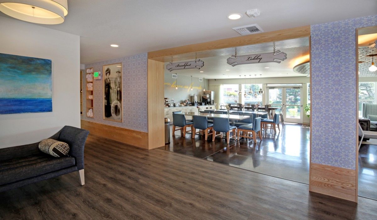 Seaside’s Award Winning Hotel steps away from Necanicum River offers family friendly amenities, kids playground, local artworks & more!